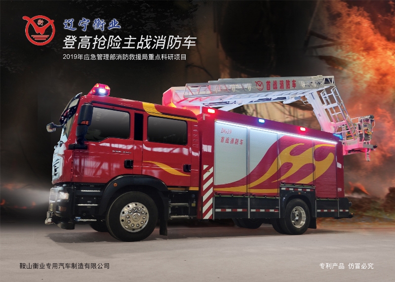 登高搶險主戰(zhàn)消防車是2019年應急管理部消防救援局重點科研項目產(chǎn)品。車輛底盤為汕德卡ZZ5206N471GF5底盤,發(fā)動機型號MC07H.35-60,功率:257kw,國六排放標準,軸距:4700mm,容量:水3000kg,泡沫1000kg,罐體材質(zhì):耐低溫高分子化合物PP材質(zhì),消防泵為美國大力,型號為KSP1000;流量:60L/s;消防炮為美國阿密龍,型號為3482+5177,照明系統(tǒng):發(fā)電機功率為5.5Kw;牽引絞盤系統(tǒng):杭州天銘,型號為FEW16500;液壓工作臂由三節(jié)臂架組成,其中有兩節(jié)伸縮和一節(jié)小臂。工作平臺載荷270公斤,平臺額定工作高度19米。