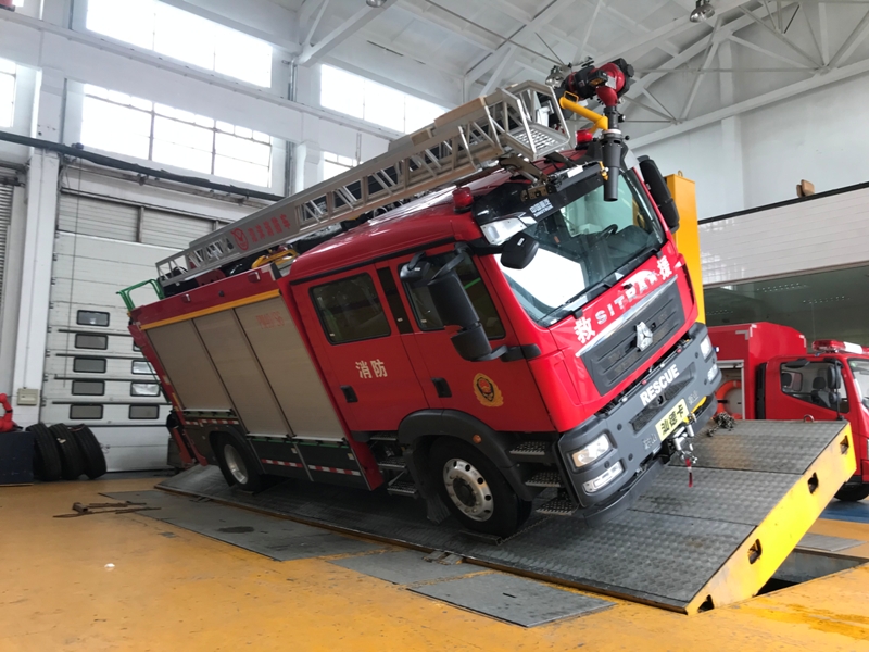 車輛底盤為ZZ5207TXFV471GF5底盤,發(fā)動機型號MC07H.35-60,功率為257kw,國六排放標(biāo)準(zhǔn),軸距4500mm,罐體材質(zhì)采用采用優(yōu)質(zhì)304不銹鋼板,容罐容量:水3600kg+B類泡沫900kg+A類泡沫200kg;消防泵為KSP1000(美國大力);壓縮空氣泡沫系統(tǒng):品牌:美國大力,型號:KSPBC1000/220型,型式:全自動集成式壓縮空氣A類泡沫系統(tǒng),消防炮為PLKD48手動及電控,升降照明系統(tǒng)YZH6-4.83CFA,牽引絞盤系統(tǒng)為杭州天銘FHW16500 整車器材箱卷簾門防水槽采用專用鋁合金開模型材,型材上加裝LED照明燈帶,使整車形成環(huán)繞式照明,既美觀且照明效果又好。器材箱卷簾門下部翻轉(zhuǎn)踏板,采用一體式鋁合金擠壓型材,模塊化組裝,增加了整車的品質(zhì)。箱體內(nèi)部器材框架采取了專用的的擋板型材,有效的保證了內(nèi)部器材固定的穩(wěn)定性,同時使器材標(biāo)牌整齊化一,清晰明了。壓縮空氣系統(tǒng)采用美國大力集成式系統(tǒng),結(jié)構(gòu)緊湊、性能優(yōu)良、操作簡便統(tǒng)一空間利用率高??諌簷C流量為國內(nèi)目前CAFS系統(tǒng)中最大流量,可達105L/S,更好地滿足于壓縮空氣泡沫系統(tǒng)性能需求。
